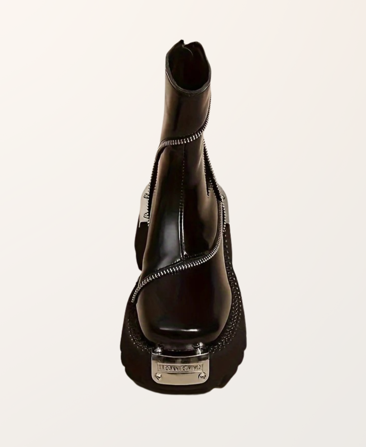 - Square toe ankle boots with zip closure