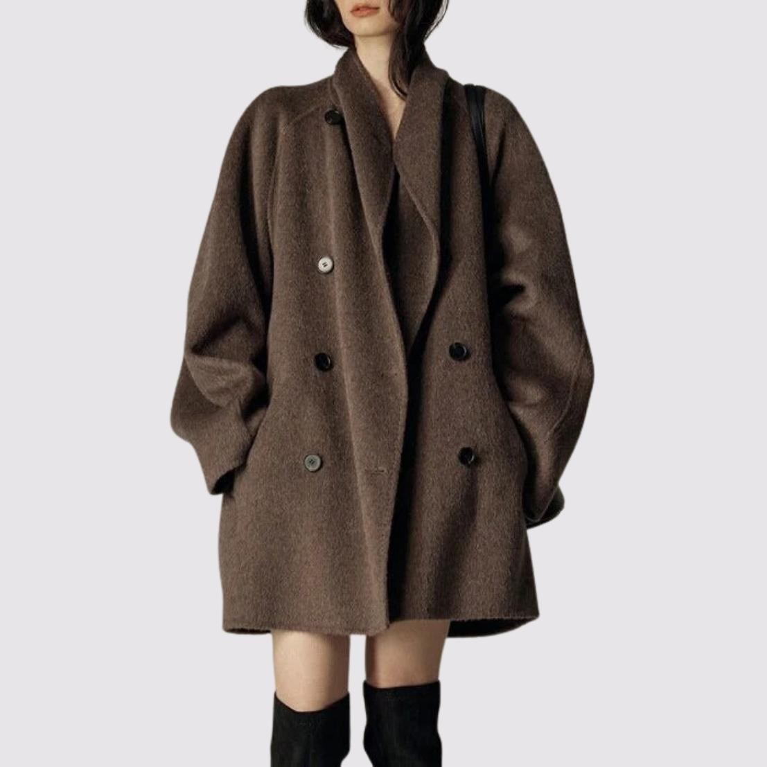 Add a timeless staple to your cold-weather wardrobe with our Women’s Oversized Wool Blend Double-Breasted Coat. Crafted from a soft and structured wool-blend fabric, this longline coat features a relaxed, drop-shoulder silhouette and classic double-breasted front for a tailored yet effortlessly chic look.