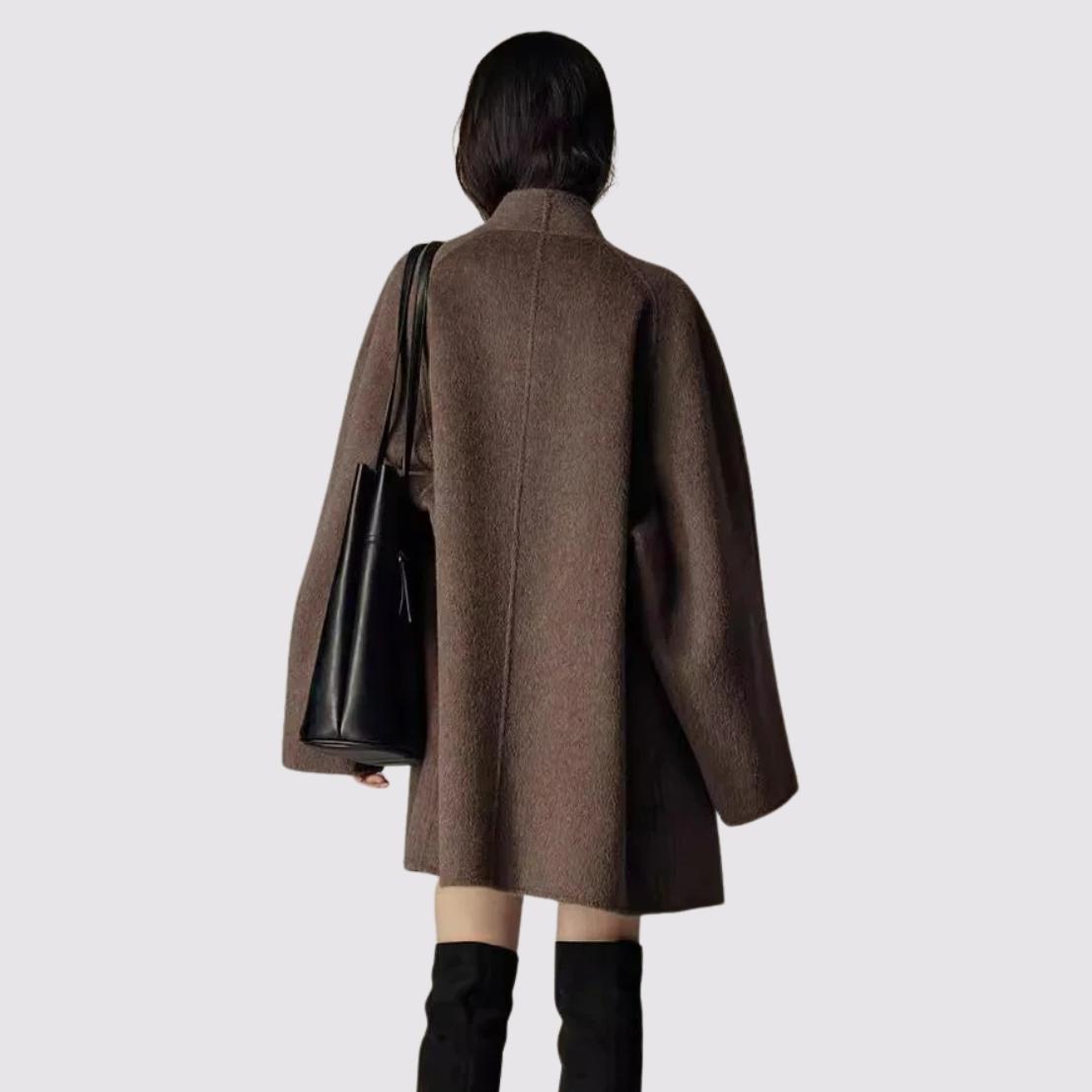 Available in Black and Mocha Brown, this versatile coat is fully lined for warmth and comfort, making it ideal for layering over dresses, knitwear, or tailored trousers during the fall and winter seasons.