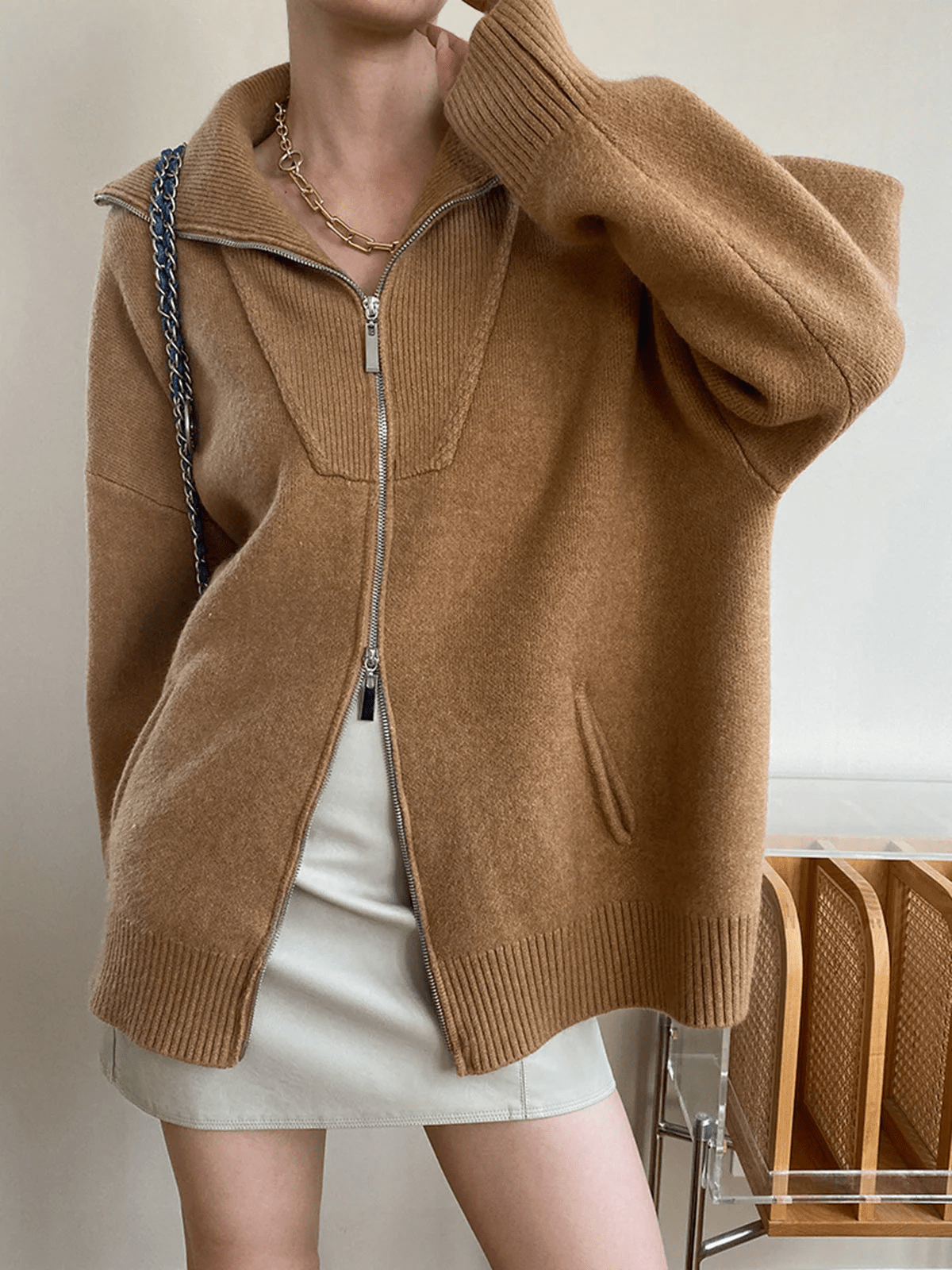 Wool Knit Oversized Cardigan With Zip-Front Herwick